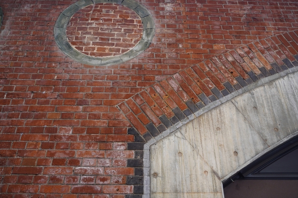 建設当時の高架橋は、複々線構造で中央に長距離列車、外側に近距離列車を通す設計。煉瓦アーチが地上階の空間を支える構造となっており、内部空間の有効利用や基礎への負担軽減など優れた力学的仕組みを備えています。レンガは赤色を基調とし、側壁には石材による装飾やモールディングが施されており、重厚さと華やかさを兼ね備えたデザインとなっています。