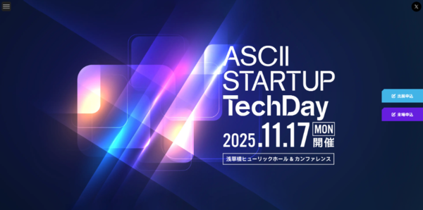 11月17日に東京・浅草橋ヒューリックホール&カンファレンスにてディープテック・スタートアップの成長を支えるエコシステムの構築や成長、発展を目的に学術、産業、行政の垣根を越えて知を結集する場を目指す「ASCII STARTUP TechDay 2025」を開催