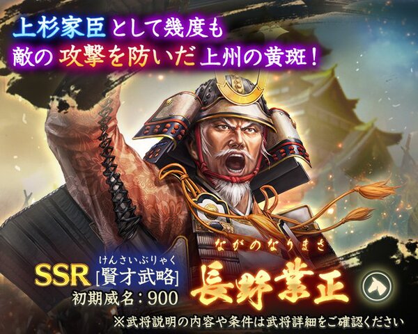 ■「特別登用」「登用」にSSR【賢才武略】長野業正が新登場!