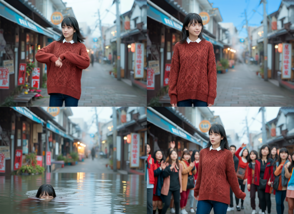 この連載でおなじみの作例モデル「明日来子さん」を使って、様々な生成結果を試してみました。人物や空間の一貫性がある程度、確保されつつ、生成されています。