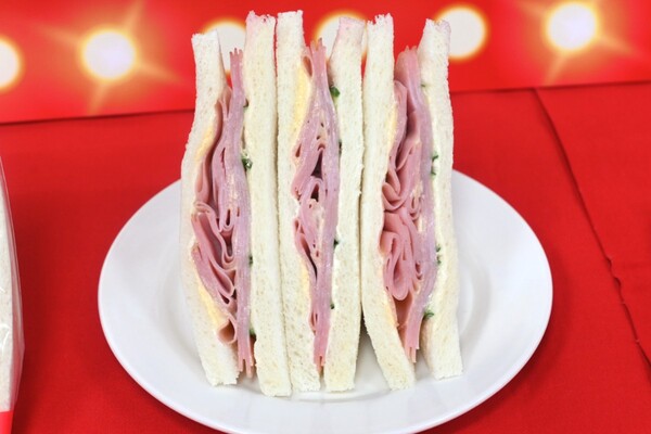 従来品「ハムサンド」と比較して、ハムの量を約50%増量。