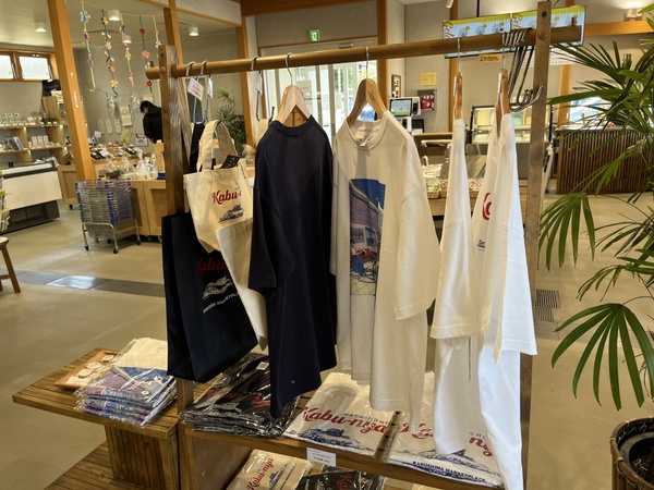 蕪嶋神社の向かいにある「かぶーにゃ」という物産販売施設に立ち寄り。今年5月にリニューアルオープンした施設で、おみやげや地元食材を使った飲食メニューを提供しています。