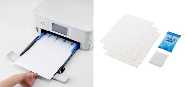 このセットは、インクジェットプリンターの給排紙ローラーの汚れを落とすクリーニングシート、機器本体や液晶部分の汚れを拭き取るウェットクリーニングティッシュとドライクリーニングティッシュの3つが含まれている。特にクリーニングシートは、特殊微粘着方式を採用し、ローラーを傷めることなく安心して使用できるとしている。