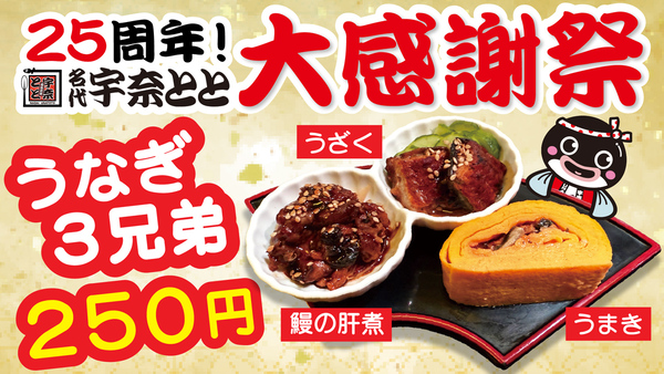 うな丼チェーン「名代宇奈とと」の25周年記念企画の一環で登場する特別価格のメニューです。