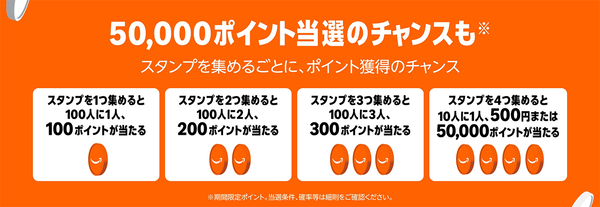 ・スタンプラリーで5万ポイントが当たるかも