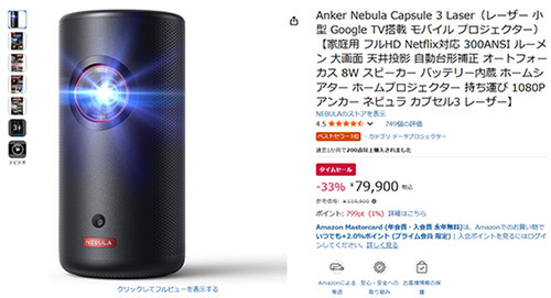 【タイムセール】Anker Nebula Capsule 3 Laser 登場!