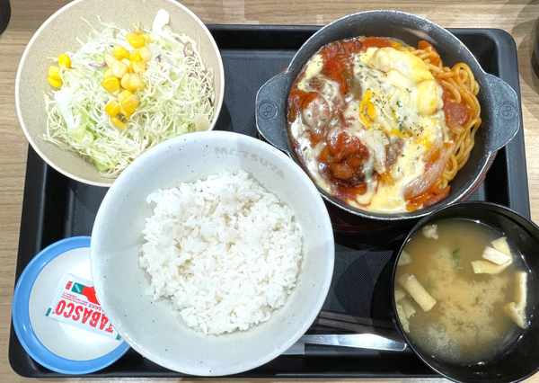 注目したいポイントは2つ。「松屋のナポリタンってどんな味?」という点と、ナポリタン(+ハンバーグ)にご飯がつく“炭水化物×炭水化物”の大盛り構成であること。