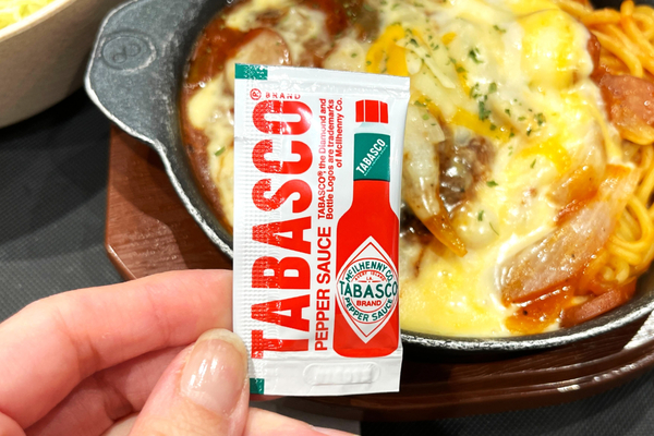 そこでうれしいのが、小袋で添えられたタバスコ。これを少しふりかけると、いっきに大人の味に様変わりします。ケチャップの甘み、チーズのコク、コショウの辛味に、タバスコ独特の酸味と刺激が加わって、後を引く!