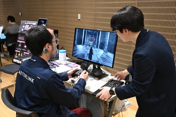 AIスタートアップの株式会社アラヤが展示した『Neuro Wizards(ニューロウィザーズ)』は、脳波(α波)が整った瞬間に魔法が発動する新感覚ゲームだ。コントローラーの操作なしで、まるで本当に魔力をためて放つような没入感が味わえる。会場では試遊待ちが途切れず、ひときわ注目を集める展示となっていた。