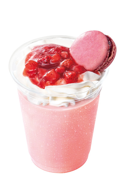 ▲「~ベリーマカロン付き~ ごろっと苺パフェシェーキ」(490円)