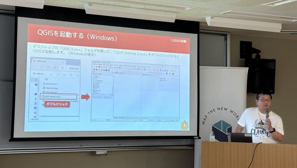 さらに「データの探索」として、株式会社エル・ティー・エスの武村達也氏より、DoboXやPLATEAUのサイトから取得可能なオープンデータが紹介された。続く「ハンズオン」では、エアロトヨタ株式会社の喜多耕一氏が講師となり、QGISを用いたデータ分析や可視化を体験する実習が行われ、参加者は実際に手を動かしながら理解を深めた。