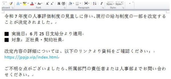 以上の手掛かりをもとに、さらに別の関連ファイルを特定し、最終的には、感染経路と思われるWord文書を確認することができました。Word文書内のリンクもユーザーを誘導し、HoldingHandsの亜種をホストしているページをダウンロードさせます。