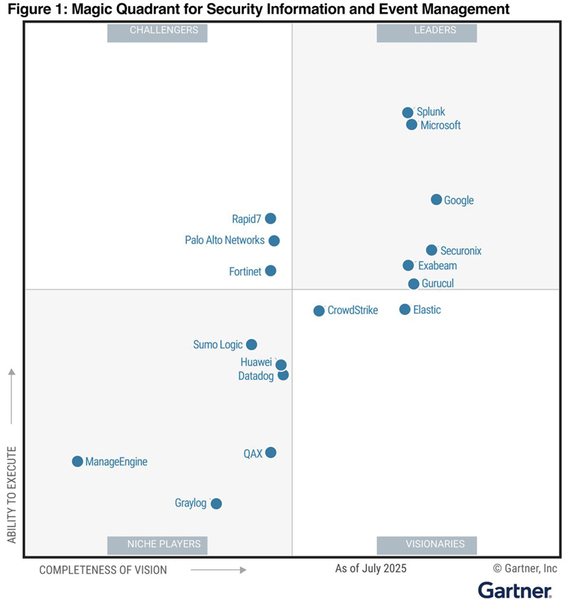 ※Gartner, Magic Quadrant for Security Information and Event Management, By Andrew Davies, Eric Ahlm, Angel Berrios, Darren Livingstone, 8 October 2025