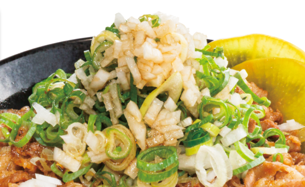 ▲トッピングすた丼一例・旨辛ねぎ盛りすた丼(1090円)