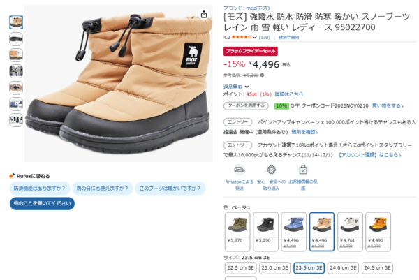 雪道でも街中でも頼れる1足を探している方におすすめのmozのスノーブーツは12月1日(月)まで開催中のAmazonブラックフライデーセールでお得に購入できます。