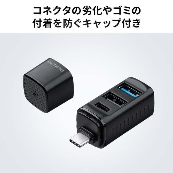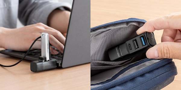 新しく登場するUSBハブは、約15gの超小型ボディを採用し、ノートPCやタブレットと共にバッグに入れてもかさばらないのが特徴だ。3ポート構成としてUSB 5Gbps対応のAポート、USB2.0のAポート、USB Type-Cポートを装備しており、多様な機器に対応できる。また、キャップ一体型の構造により、端子を保護しながら移動中の使用にも配慮されている。
