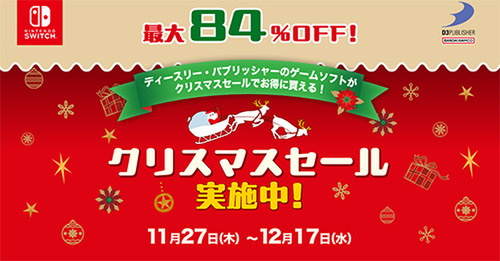 ディースリー・パブリッシャーのNintendo Switchダウンロード版ソフトがお得になる「クリスマスセール」が現在開催中です。大人気シリーズ「地球防衛軍」や、最大84%オフの超お買い得タイトルまで、幅広いラインナップが対象となっています。