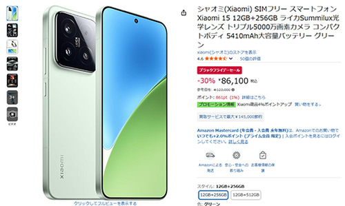 Xiaomi 15を30%オフの86,100円で購入可能です。この機会に高性能スマートフォンをお得に手に入れましょう。