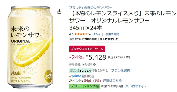 Amazonブラックフライデーで「【本物のレモンスライス入り】未来のレモンサワー オリジナルレモンサワー 345ml×24本」がおトクに!
