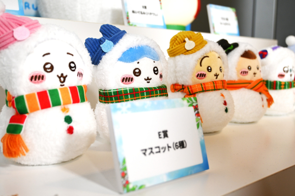 A賞~C賞はギュッとだっこできるサイズのちいかわたちのぬいぐるみ。ゆきだるま仕様でもふもふです。たまらないですね。