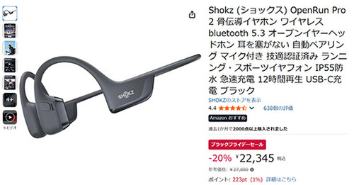 Shokz(ショックス)のオープンイヤーイヤホン「OpenRun Pro 2」が、Amazonブラックフライデーセールに登場しました。