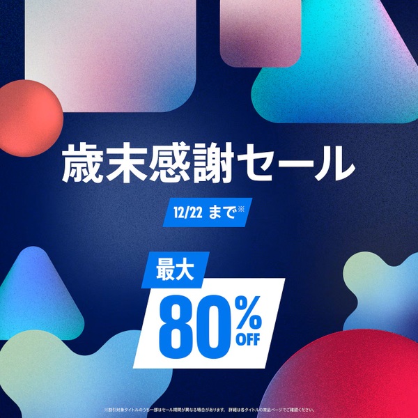 ソニー・インタラクティブエンタテインメントはPlayStation Storeにて、「歳末感謝セール!」を開催。PS5/PS4タイトルが最大80%オフで提供されている。そのなかでオススメのタイトルを4本厳選して紹介しよう。セール期間は12月22日まで。