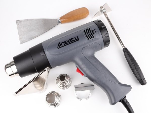 この条件を満たしているもののひとつが、Anestyの「HG-02Y」です。最大消費電力は1500Wなので、ヒートガンとしては平凡。しかし、液晶画面を備え、10度刻みで50~600度まで設定できるほか、風量も強弱2段階切り替えできるというのが魅力です。また、4種類のノズルと2種類のスクレーパーが付属しているというのもいいところ。