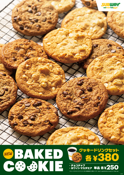 サブウェイは、12月10日から、店内で焼き上げるクッキー「チョコチップ」と「ホワイトマカダミア」の2種類を全国の店舗で発売します。