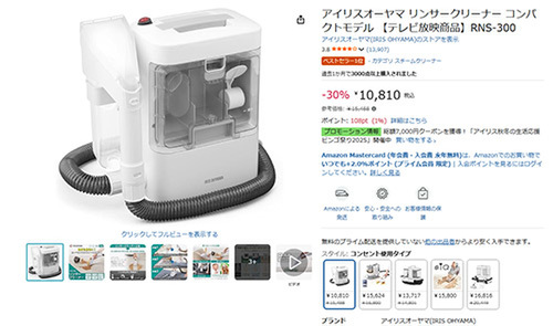 アイリスオーヤマのリンサークリーナー「RNS-300(コンパクトモデル)」が、Amazonセールに登場しました。参考価格15,488円のところ、30%オフの10,810円という魅力的な価格となっています。