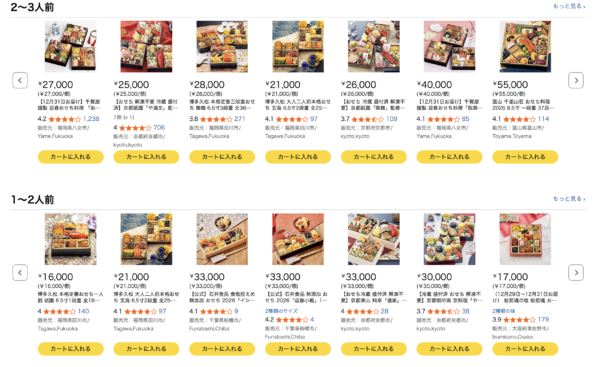 レビュー機能も充実しているため、実際に届いた人の声を参考にしながらおせち選びができるのもAmazonならではの利点と言えます。