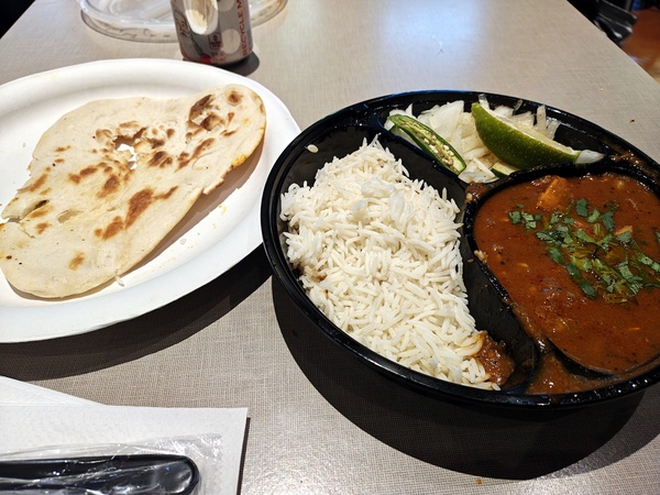 re:Inventは毎年来ているので、この店の存在は知っていた。そして私は無類のカレー好きである。いつか食べてやろうと機会を伺っていたのだが、いつもインドの方が店の前を埋め尽くしているのである。だが、その日はたまたま早かったのか、店がわりとすいていたのだ。