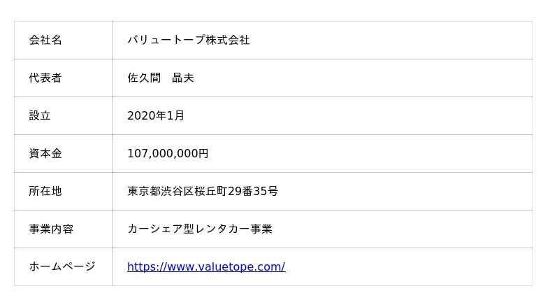 バリュートープ株式会社 オールタイムレンタカー運営事務局