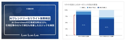 AIフレンドリーなリライト施策検証 - AI Overviewsの引用成功率は32%、引用記事の81%で順位も改善したロジックを解説