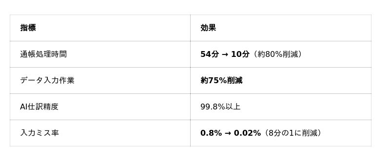 freee、マネーフォワード、弥生などの既存システムはそのまま。手前にAIを配置するだけで、領収書の自動読み取り、仕訳提案、インボイス番号チェックを実現します。