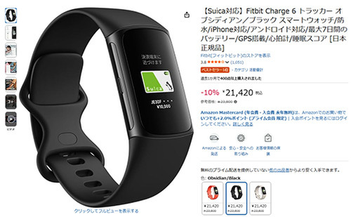 Fitbit(フィットビット)のトラッカー「Fitbit Charge 6(日本正規品)」がAmazonでセール対象。参考価格23,800円から10%オフの21,420円で販売されています。