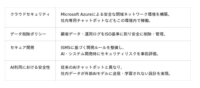 社内で利用されるAIチャットボットがAI学習に利用されないセキュアな設計となっています。