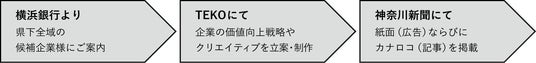 TEKOは企業価値を向上させるクリエイティブファームとして、様々なプレーヤーと連携・提携しながら活動しております。横浜銀行とは2022年に提携し、神奈川県内企業の支援を行ってまいりましたが、今回新たに神奈川新聞と連携することで、特に地域の企業と地域の皆様の絆づくりを目的に活動を進めて参ります。