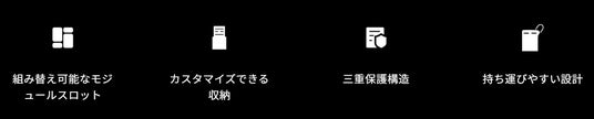 組み替え可能なモジュールスロットモジュール式デザインにより、柔軟に構成を変更できます。複数のモジュールを自由に組み合わせて配置できます。構成により、CFA最大6枚、micro SD最大16枚、SD最大6枚、CFB/XQD最大6枚、Nano SIM最大1枚を収納できます(同時収納不可)。