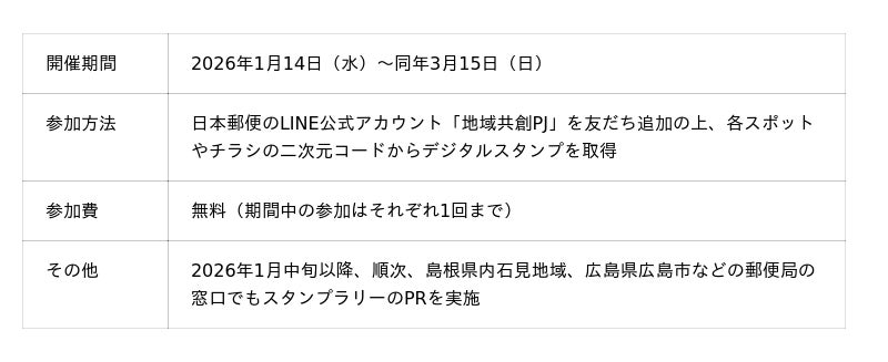 日本郵便はこれまで島根県大田市大森町(石見銀山エリア) や宮城県東松島市において、郵便局ネットワークやデジタル技術(NFT※1)を活用し、観光体験向上、地域ファン増加および地域全体の活性化を目指した取り組みを行ってきました。 これらの仕組みを活用し、公益社団法人島根県観光連盟から島根県石見(いわみ)地域※2の観光スポットを、島根県教育委員会から島根県益田市の日本遺産を、それぞれ対象としたデジタルスタンプラリー業務を受託します。当社はこちらの2つのデジタルスタンプラリーにNFT配布技術を提供いたします。