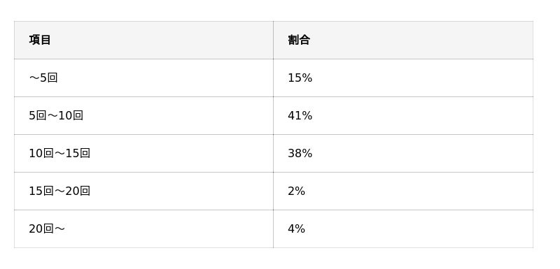 - 施術を受けた回数を「5回~10回」と回答した人は全体の41%を占めた