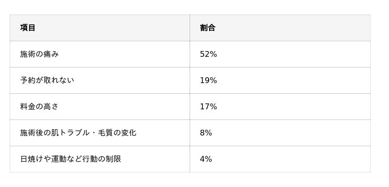 - 「施術の痛み」を悩みに感じたと回答した人が52%という結果