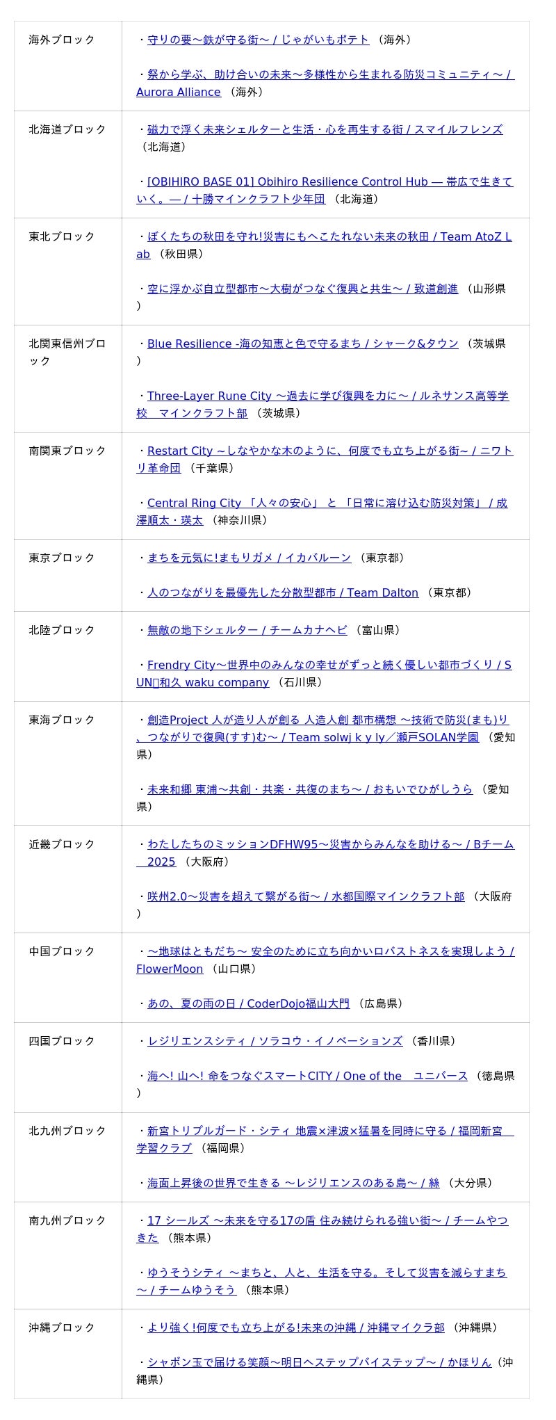 ※ブロック名|作品名 / チーム名 ( )内は出場都道府県:リンク先では作品情報をご覧いただけます。