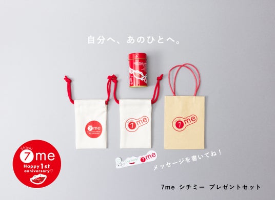 3.【販売中】7me【shichi-me】シチミー プレゼントセット(シチミー1缶、布袋1枚、メッセージカード1枚、紙バッグ1枚 付き)