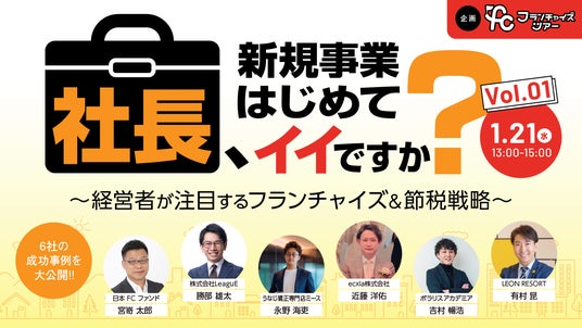 経営者が注目するフランチャイズ&節税戦略「社長、新規事業はじめてイイですか?」オンラインフランチャイズツアーを11月4日開催