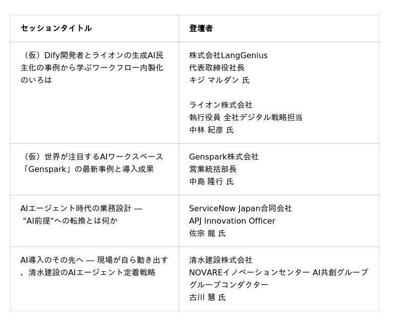 「AI Agent Day 2026」注目登壇者第三弾を公開|“ AI前提 ”の業務設計と現場定着から最新技術動向まで、実装の最前線が集結