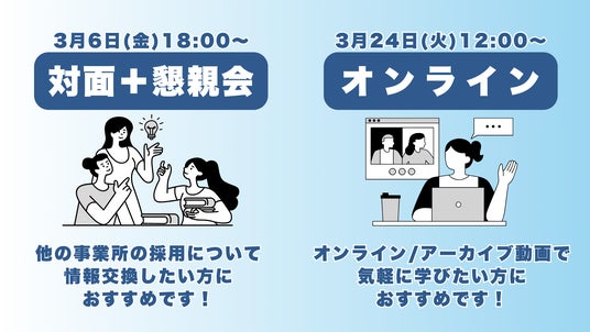 対面:2026年3月6日(金)18:00~、オンライン:2026年3月24日(火)12:00~13:00、の2日程で開催。在留資格や特定技能制度について学びたい方におすすめの内容です。