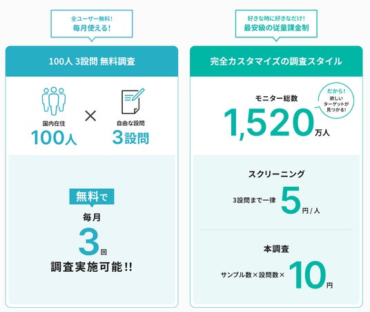 本番サービスでは最大1,000名の回答データが収集可能になりました。より具体的な調査設計が可能であり、詳細な調査データ収集が実現できます。