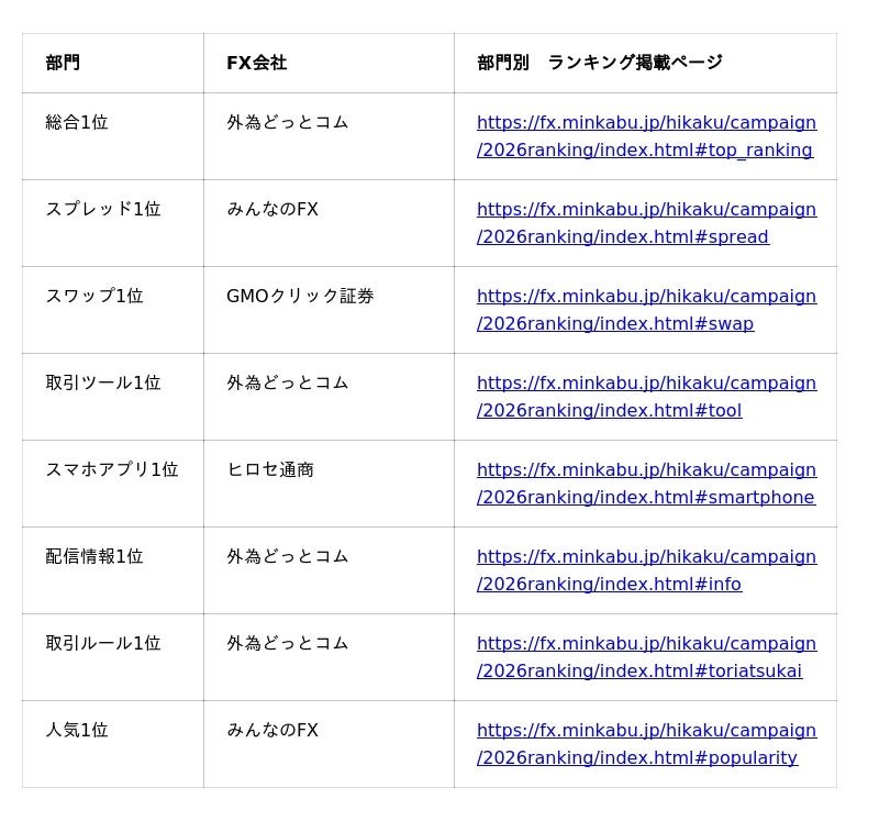 株式会社ライブドア(以下「当社」、本社:東京都港区、代表取締役社長:宮本 直人)は、運営する「MINKABU(みんかぶ)」(https://minkabu.jp/)に掲載しているネット証券比較と、FX会社比較における2026年版年間ランキングを発表いたしました。