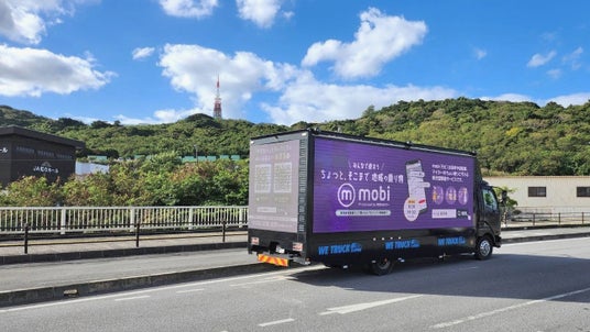 同じ道路を走るモビリティであるアドトラックが広告塔となることで、「電話やアプリで車両を呼んで、街中を自由に移動する」という「mobi」のサービスイメージを直感的に伝えます。