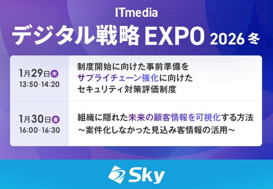 Sky株式会社は、2026年1月27日(火)~2月25日(水)に開催される、ITmedia主催のオンライン展示会「ITmedia デジタル戦略EXPO 2026 冬」に協賛いたします。